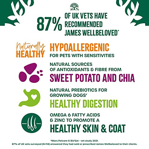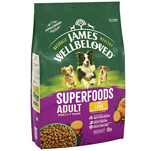 James Wellbeloved Adult Superfoods 10 kg Bag, Hypoallergenic Dry Dog Food, Lamb with Sweet Potato & Chia