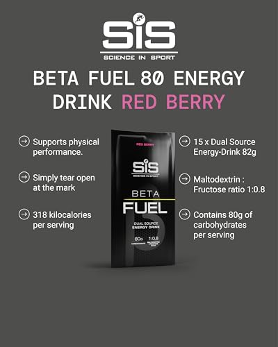 Science in Sport Beta Fuel 80 Dual Source Energy Drink Powder, Red Berry Flavour Carb Powder, 80g of Carbs Per Pack (15 Pack)
