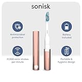 Sonisk Pulse | Battery Powered Electric Toothbrush | Portable Travel Size with Antimicrobial Sonic Technology | 1x Battery, 2X Brush Heads, 1x Travel Case Included (Rose Gold)