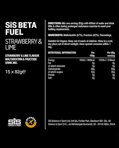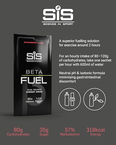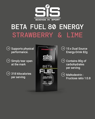 Science in Sport Beta Fuel 80 Dual Source Energy Drink Powder, Strawberry and Lime Flavour Carb Powder, 80g of Carbs Per Pack (15 Pack)
