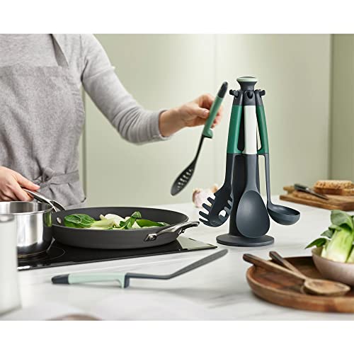 Joseph Joseph Elevate - Kitchen tools & gadgets Carousel 6-Piece Utensil Set with rotating stand, Ergonomic silicone handles, non stick head- Sage Green, 12