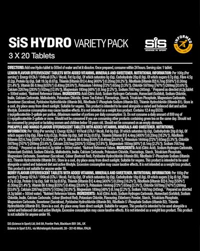 Science in Sport HYDRO Electrolyte Tablets 60 pcs. Variety Pack Pineapple Mango, Berry, Lemon – Vegan & Gluten-Free, Ideal to Promote Hydration and Maintain Electrolytes Balance (packaging may vary)