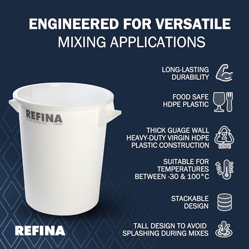 REFINA X-1 75L Mixing Tub for Plasters, Screeds, Resins & More - 57 cm Tall, Thick-Walled HPDE Plastic Bucket with Handles & Withstands -30°C to 100°C - Durable & Easy-to-Clean Food Grade Bucket