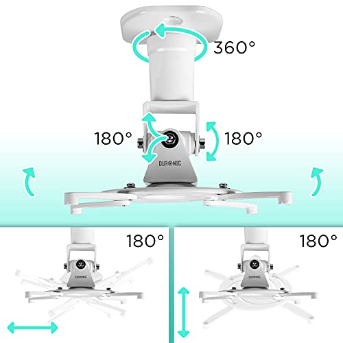 Duronic Projector Mount PB07XB | Bracket Fixing for Ceiling | 10kg Capacity | Universal | Heavy Duty | Fittings Included | Rotate 360 °, Swivel 180 °, Tilt 180° for Easy Projection Set-up