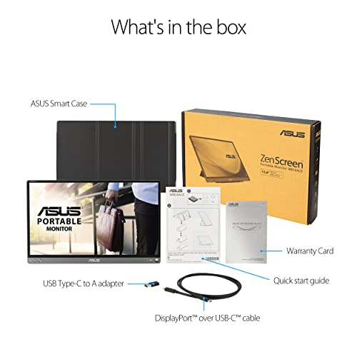 ASUS ZenScreen Portable Monitor 15.6" 1080P FHD Laptop Monitor (MB16ACE) - IPS USB-C & USB 3.0Travel Monitor, Flicker-free and Blue Light Filter w/Smart Cover, External Monitor For Laptop & Macbook