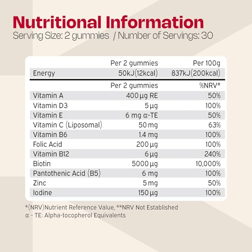 Nutriburst - Hair Skin and Nails Gummies - Biotin Zinc Vitamin E for Thicker Hair & Stronger Nails - Sugar Free Supplements - 60 Gummies 1 Month Supply - Suitable for Vegetarians & Vegans