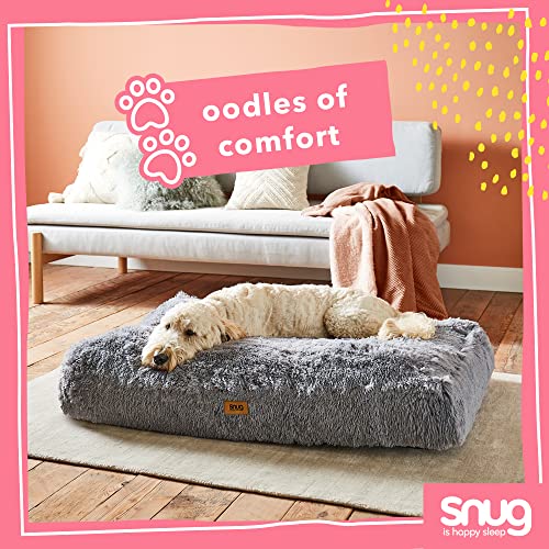 Snug Super Fluffy Large Dog Bed - Super Soft, Cosy and Comfortable Cat Dog Pet Bed Pillow Mattress Sofa Cushion with Non-Slip Base and Machine Washable Cover - Large - 90 x 60 x 11cm - Grey