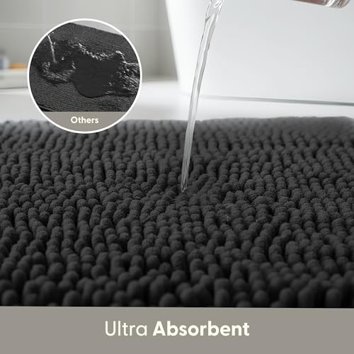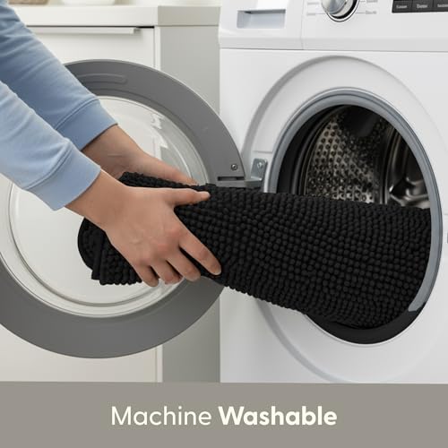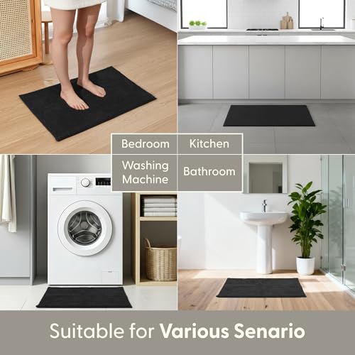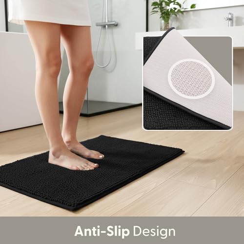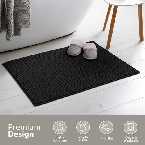 KEPLIN Non-Slip Microfibre Bath & Toilet Mat - Soft, Plush & Comfortable Rug with Machine Washable Design - Water Absorbent & Quick Drying to Keep Bathroom & Home Hygienic & Clean - (40x60cm) Black