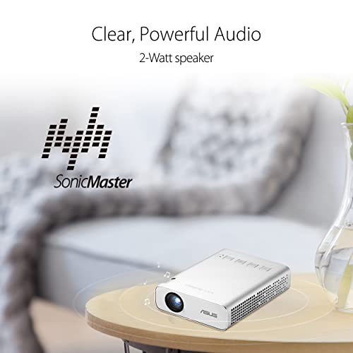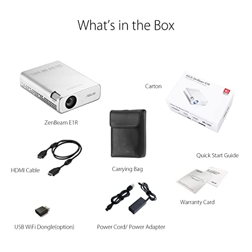 ASUS ZenBeam E1R mini LED projector – 200 LED lumens, WVGA (854x480) resolution, automatic portrait projection mode, built-in battery for up to 4-hour portable video playback
