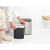 Brabantia - Bo Waste Bin 7L - Small & Stylish Rubbish Bin - Easy Open and Soft Closing Lid - Hygienic & Space Efficient - Wall Mountable - for Bathroom, Toilet, Home Office - Matt Steel FPP