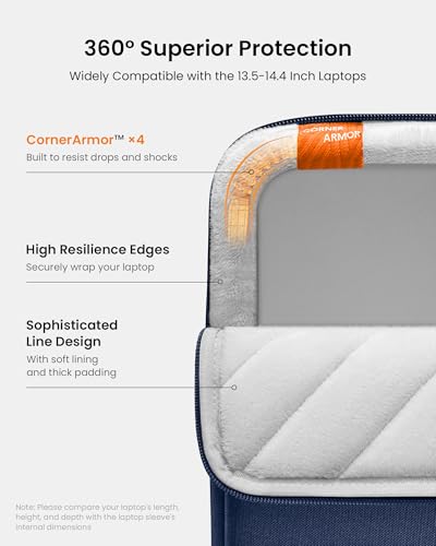 Tomtoc 360° Protective Laptop Sleeve for 13.5-14.4 Inch Surface Laptop Studio/5/4/3, Surface Book, Water-Resistant Case for Acer Aspire/Swift 14, ASUS Vivobook/Zenbook 14, Jumper EZbook X3