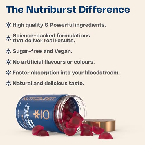 Nutriburst Men’s Multivitamin - Immune System & Mental Performance - Contains 16 Micronutrients; B2, B3, B5, B6, B12, A, C, D - Vegan Sugar Free Supplement - 60 Berry Gummies - 1 Month Supply