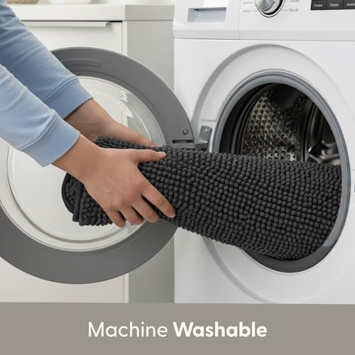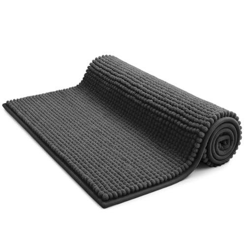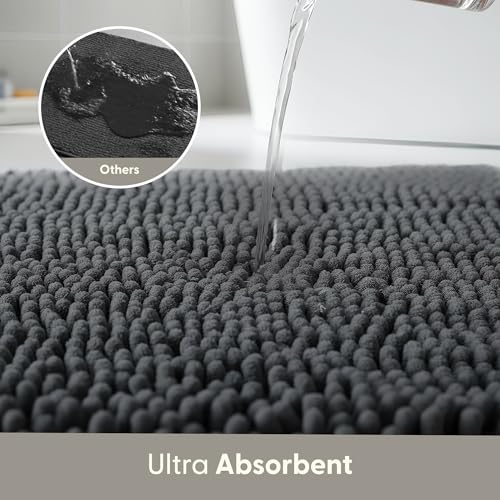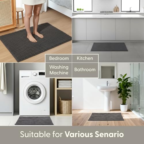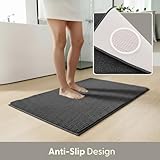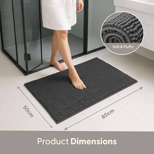KEPLIN Non-Slip Microfibre Bath & Toilet Mat - Soft, Plush & Comfortable Rug with Machine Washable Design - Water Absorbent & Quick Drying to Keep Bathroom & Home Hygienic & Clean (50x80cm) Grey