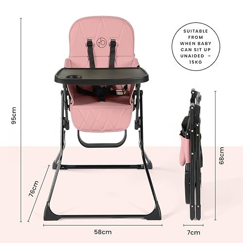 Ickle Bubba Flip Magic Fold Highchair (Blush Pink) – Suitable from Sitting Up to 15kg, 5-Point Safety Harness, Removable Tray, Quick One-Hand Fold, Compact Slimline Design for Easy Storage