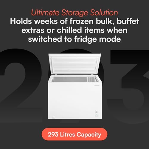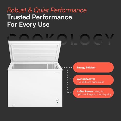 Cookology CCFZ300WH Freestanding Chest Freezer 293L Capacity for Garages, Outbuilding and Sheds, Featuring Basket, Refrigeration Mode, Temperature Control and 4 Star Freezing Rating - In White