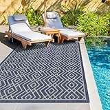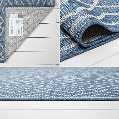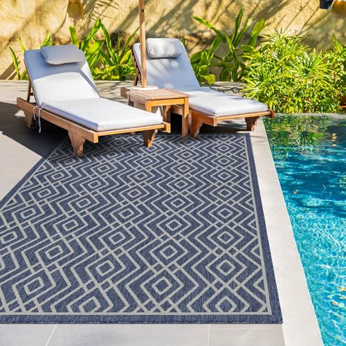 homeart Outdoor Rugs | Easy-Cleaning Indoor & Outdoor Area Rugs for Porch, Deck, Balcony, Garden, Picnic, Kitchen, Hallway | UV & Weather-Resistant Large Patio Rug Mats | D.Blue Cream, 120 x 170 cm