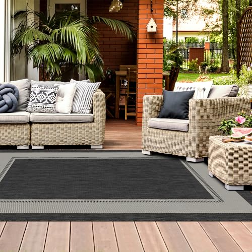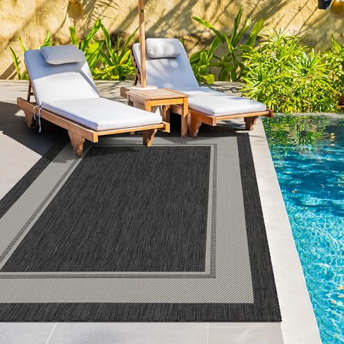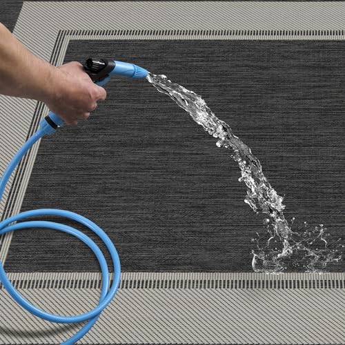 homeart Outdoor Rugs | Easy-Cleaning Indoor & Outdoor Area Rugs for Porch, Deck, Balcony, Garden, Picnic, Kitchen, Hallway | UV & Weather-Resistant Large Patio Rug Mats | Anthracite Cream 80 x 150 cm