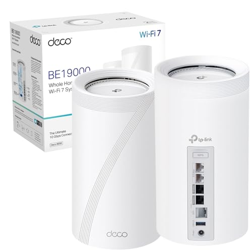 TP-Link Deco BE85(2-pack) Tri-Band BE19000Mbps Whole Home Mesh WiFi 7 System, Quad-Core CPU WiFi Extender Booster, Ultra-Fast 2x 10 Gbps Wired WAN/LAN Ports, 320 MHz Channels, 4K-QAM, HomeShield