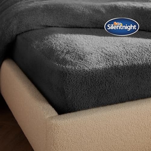 Silentnight Teddy Fleece Fitted Sheet Single - Charcoal Teddy Bear Fleece Bottom Sheet Warm Cosy Fluffy Winter Fitted Sheet Deep Fitting with Elasticated Corners - Single - Charcoal