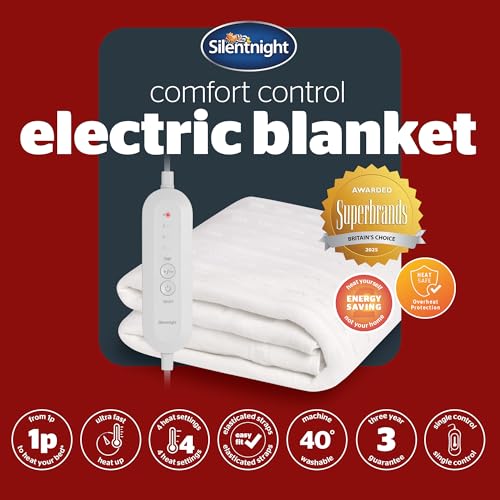 Silentnight Comfort Control Electric Blanket Super King Bed - Heated Underblanket with 4 Heat Settings - Fast Heat Up - Overheat Protection and Easy Fit Straps, Machine Washable, Super King, 160x200cm