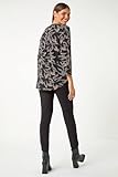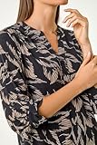 Roman Originals Shirt for Women UK Ladies Top Collarless Blouse Stretchy Tunic Smart Casual Autumn Winter Jersey 3/4 Length Sleeve Notch V Neck Flattering Office Work - Beige Black - Size 10