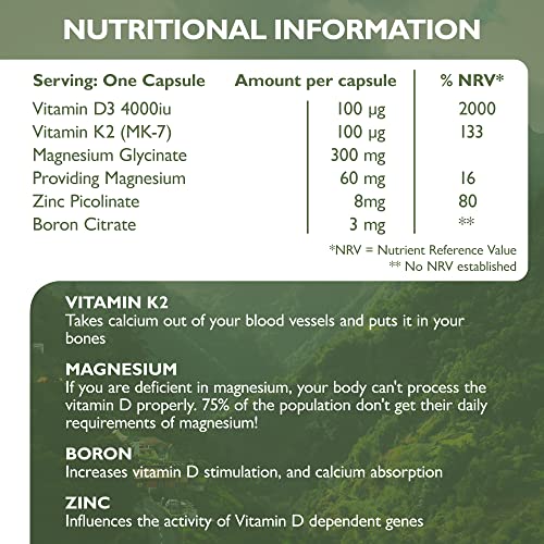 Barefoot Nutrition - Vitamin D3 Complete 4000 IU, with Vitamin K2 MK-7, Magnesium, Boron & Zinc Supplement, High Strength Formula for Bone and Normal Health Function, 60 Capsules