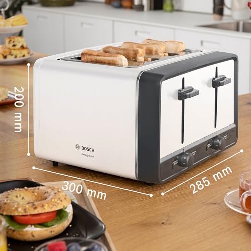 Bosch DesignLine Plus TAT5P441GB 4 Slot Stainless Steel Toaster with variable controls - White