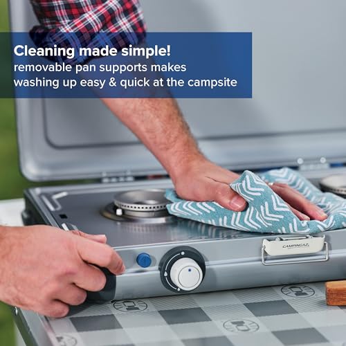 Campingaz Camping Kitchen 2 Grill & Go R Camping Stove, 2 x 2,000 Watts output, with removable Grill Plates & Pot Supports, multiple Grilling and Cooking options, light & compact, White