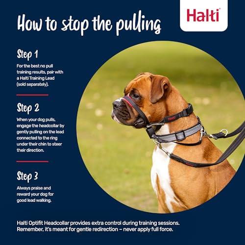 HALTI Optifit Headcollar Size Medium, Dog Head Harness to Stop Pulling on the Lead, Easy to Use, Adjustable & Reflective Head Collar for Dogs, Professional Anti-Pull Training Aid, Black