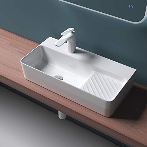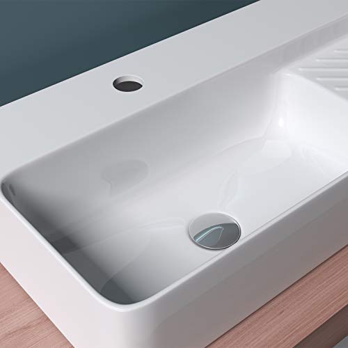 Durovin Bathrooms Ceramic Basin - Wall Hung or Counter Top Mount Sink - Single Tap Hole with Drainboard - Rectangular 450 x 305mm (WXD)