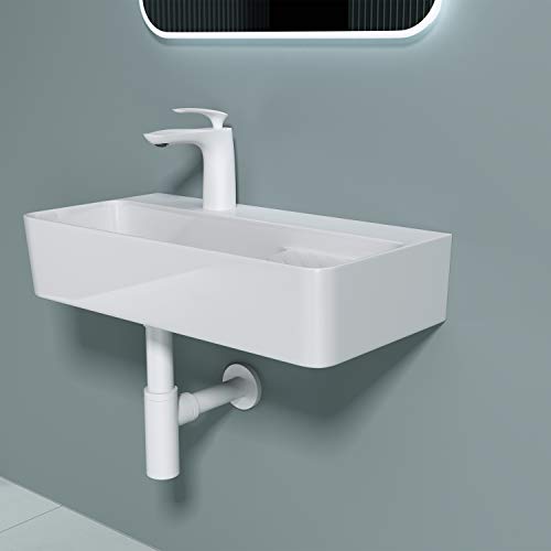 Durovin Bathrooms - Ceramic Basin - Wall Hung or Counter Top Mount Sink - Single Tap Hole With Drainboard - Rectangular 450 x 305mm (WxD)