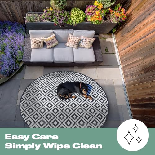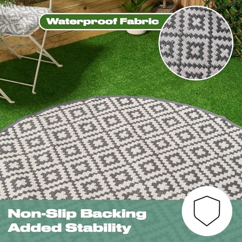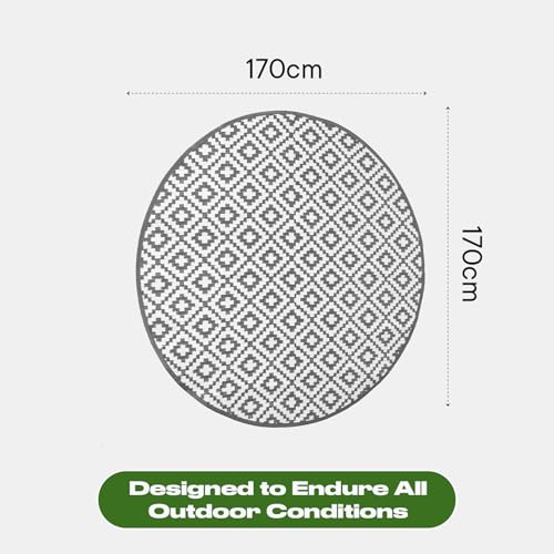 OHS Outdoor Rug Garden Geometric Round Waterproof Area Mat in Grey Size: 170 cm diameter Grey 170 cm diameter