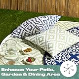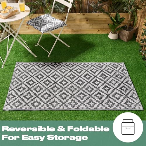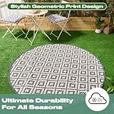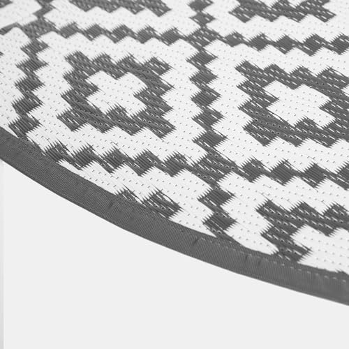 Dreamscene Round Outdoor Rug Geometric Trellis, Grey White Garden Mats Foldable Garden Outdoor Rugs Water Resistant Easy Storage Summer Patio Decking Reversible, 170cm