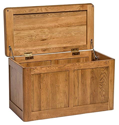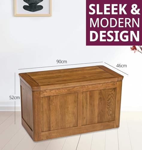 Hallowood Furniture London Oak Large Blanket Box with Thick Top Lid, Solid Oak Wooden Ottoman Storage Box, Toy Trunk, Blanket Chest, Wooden Storage Chest for Bedroom or Living Room