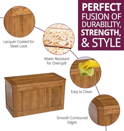 Large Blanket Box, Solid Oak Wooden Storage with Lid, Toy Storage Chest, Ottoman