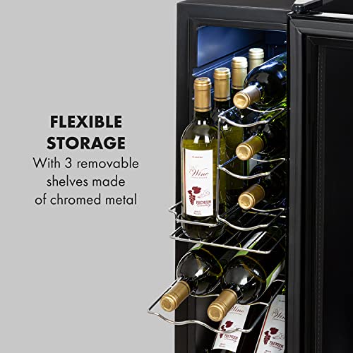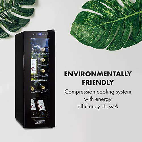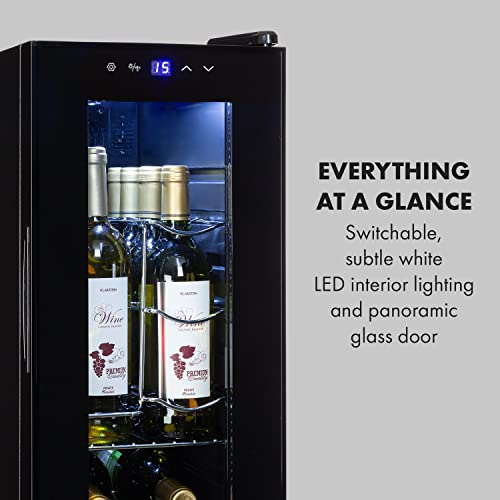 KLARSTEIN Free-standing Wine Cooler Fridge, Single Zone Wine Fridge with Glass Door, 32L Slimline Drinks for Home Pub, Indoor/Outdoor Bar Fridge, 12 Bottles