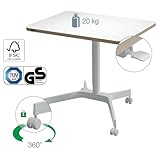 Leitz Ergo Small Sit Stand Desk with Pneumatic Height Adjustment, Ergonomic Standing Desk, Holds Up to 20kg, Movable Desk with Castor Wheels, 80cm x 60cm, Ergo Range, White, 65360001