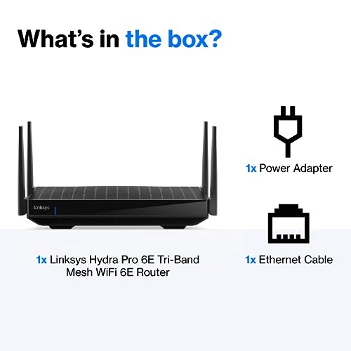 Linksys Hydra Pro 6E TriāBand WiFi 6E Mesh Router - Wireless Gaming 8-Stream Router, 6 GHz Band for 8K Streaming, Up to 6.6 Gbps Speed, 2700 sq. ft Coverage, 55+ Devices, Works with Velop Mesh System