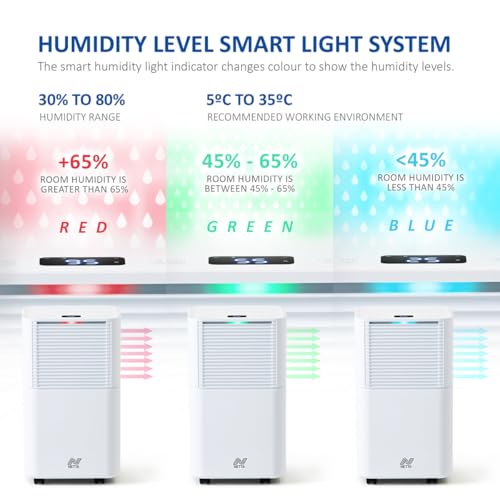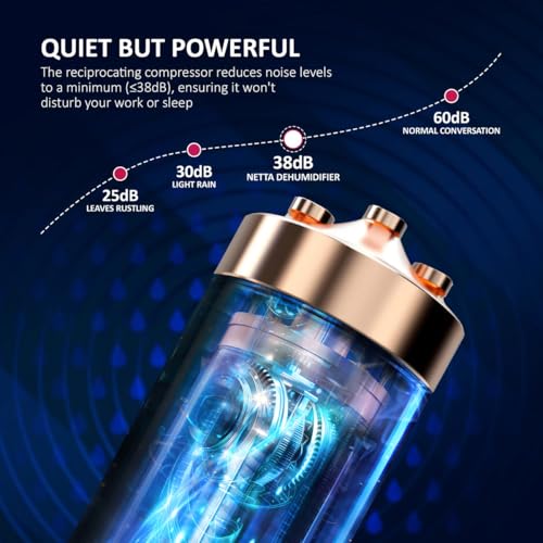 NETTA 12L/Day Compressor Quiet Dehumidifier, Powerful Mould Remover & Laundry Drying with 24-Hour Timer and Sleep Mode for Damp, Mould and Condensation, 2L Water Tank, Child Lock