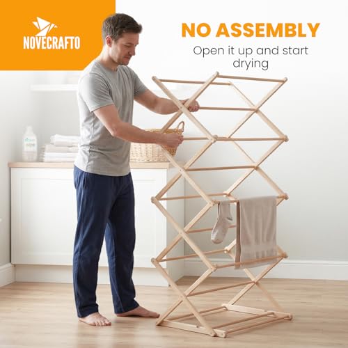 Novecrafto Foldable Wooden Clothes Airer - Indoor Laundry Drying Racks, Portable & Adjustab