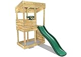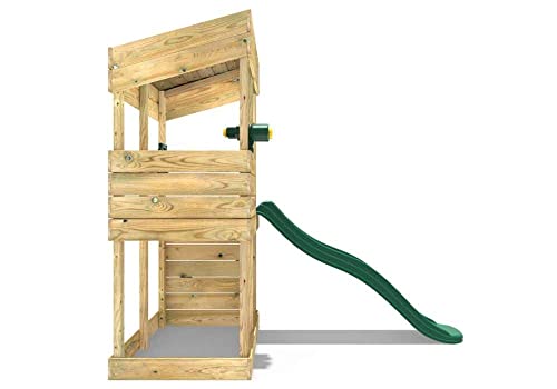 Rebo - Childrens Wooden Lookout Tower Playhouse with 6ft Slide - Adventure Set