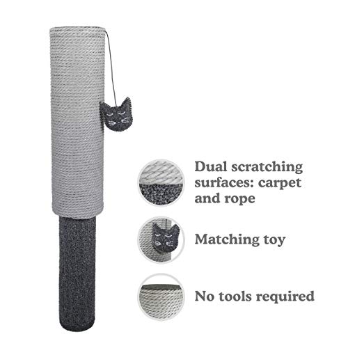 Rosewood Charcoal Adjustable Pole Scratcher, Grey Cat Scratch Post Extends from 69cm to 82cm, Features Hanging Cat Toy, Twist-to-Adjust, Ideal for Saving Space Under Tables