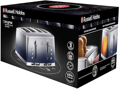 Russell Hobbs 4 Slice Eclipse Toaster with faster toasting technology (Independent slots, Lift & look, 6 Browning levels, Frozen/Cancel/Reheat with indicator lights, 850W, Midnight Blue) 25141