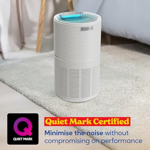 Russell Hobbs Air Purifier for Bedroom Home 280m ³/h CADR, 99.95% Carbon Filter Captures Bacteria, Allergies Odour, Dust, LED Touch Control Display, Clean Air Style White RHAP2831W