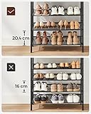 VASAGLE 5-Layer Shoe Rack, High Shoe Storage with 4 Mesh Shelves and Large Top for Bags, Space Saving for Entrance, Hallway, Steel, Industry, Rustic Brown and Black LBS038B01