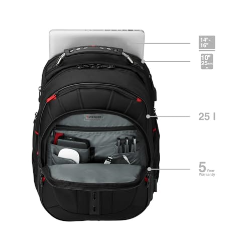 Wenger 606492 Pegasus Ballistic Deluxe 14'/16' Expandable Laptop Backpack, Padded Laptop Compartment with SmartCharge USB Port in Black (25 litres)
