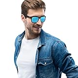 Ray-Ban Mens Rectangle Black Blue Mirror Sunglasses Black One Size