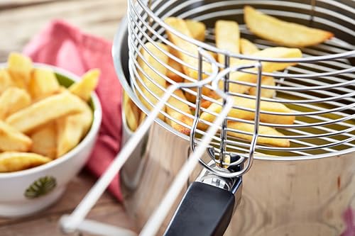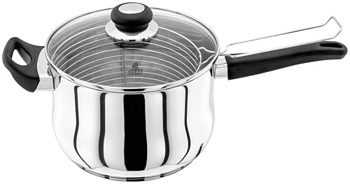 Judge Vista Stainless Steel Chip Pan Fryer with Basket and Helper Handle 22cm, Shatterproof Vented Glass Lid, Induction Ready, Oven Safe