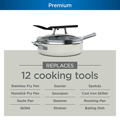 Ninja CW102WH Foodi NeverStick PossiblePan, Premium Set with 4-Quart Capacity Pan, Steamer/Strainer Basket, Glass Lid & Integrated Spatula, Nonstick, Durable & Oven Safe to 500°F, Vanilla Bean