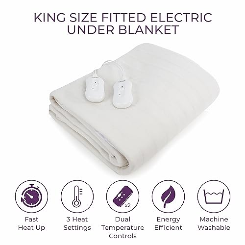 Carmen C81191 King Size Fitted Electric Under Blanket with Overheat Protection, 65W x 2, 203 x 152cm + 40CM Skirt, White